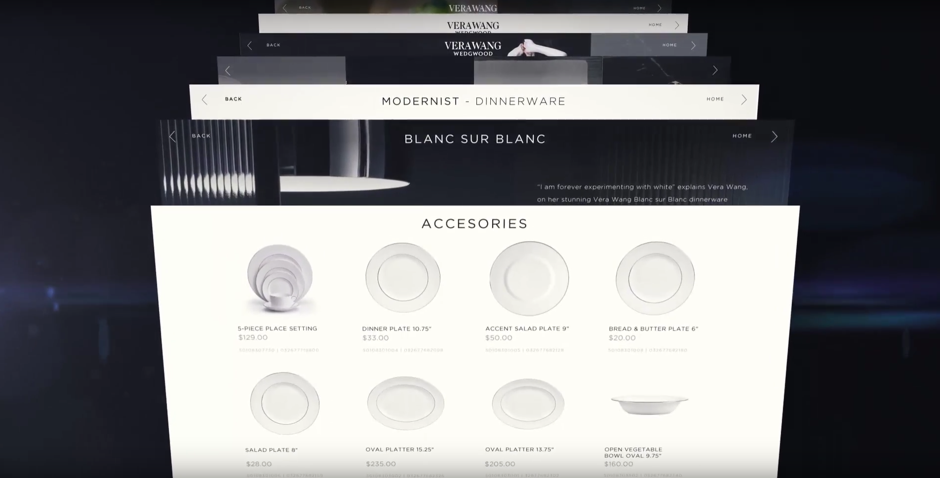 The touchscreen application prompts customers to fill in a questionnaire to identify her preferences from four distinct profiles – modern, traditional, romantic or individualist. After they complete this they are presented with a curated list of products from Vera Wang’s latest collection, Elements of Style. This personalised offering includes flatware, dinnerware, giftware, stemware plus accessories. The bride-to-be can easily browse this offering, compare and even email their selection to themselves or others as part of their gift registry. And through Prendi analytics, Vera Wang can continually update the content to ensure the solution evolves with the brand and expectations of the customer.